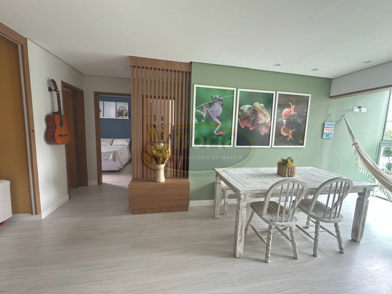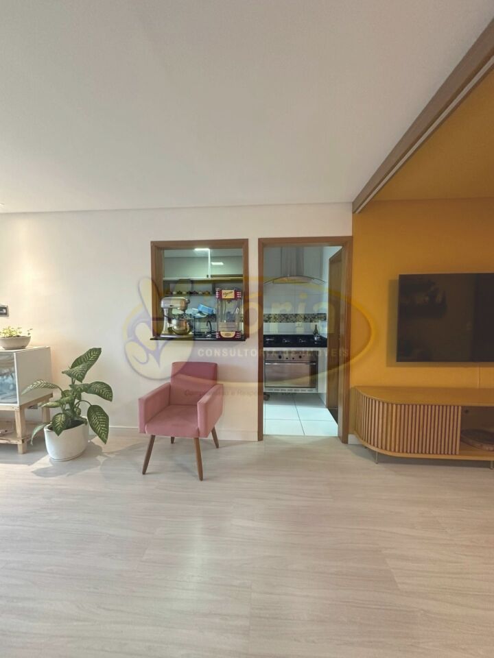 02 DORMITÓRIOS SENDO 1 SUITE COM ARMARIOS , SALA DE ESTAR , SALA DE JANTAR COM SACADA , COZINHA PLANEJADOS , BANHEIRO SOCIAL + LABABO AREA DE SERVIÇO, 02 VAGAS DE GARAGEM.