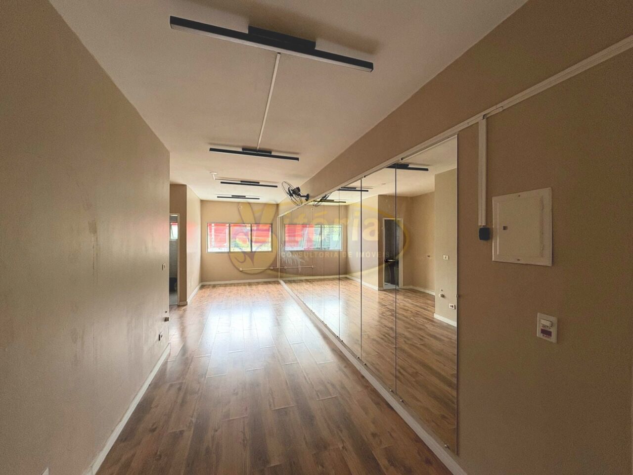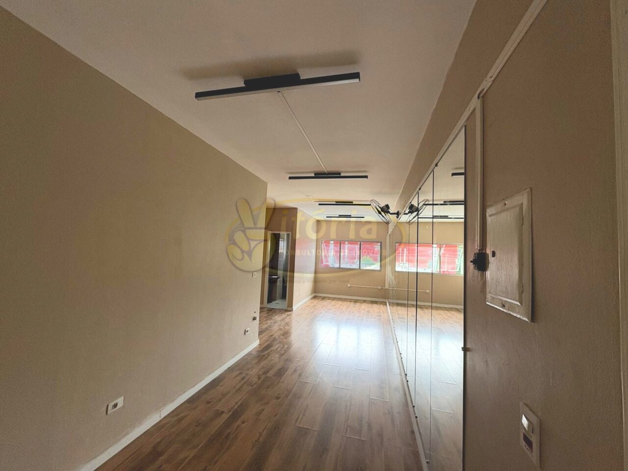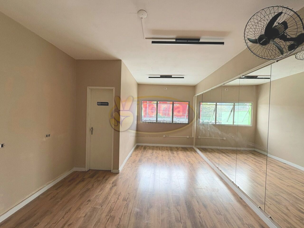 COM APROXIMADAMENTE 24 M² (PISO CERAMICA), OBS: PAREDE LADO DIREITO TODO COM ESPELHO, 1 WC SOCIAL (PISO E AZULEJO).
