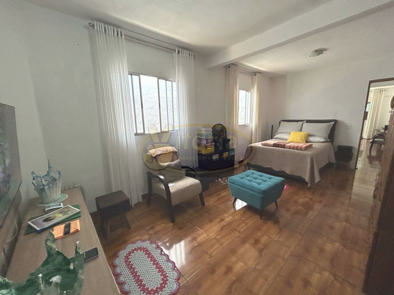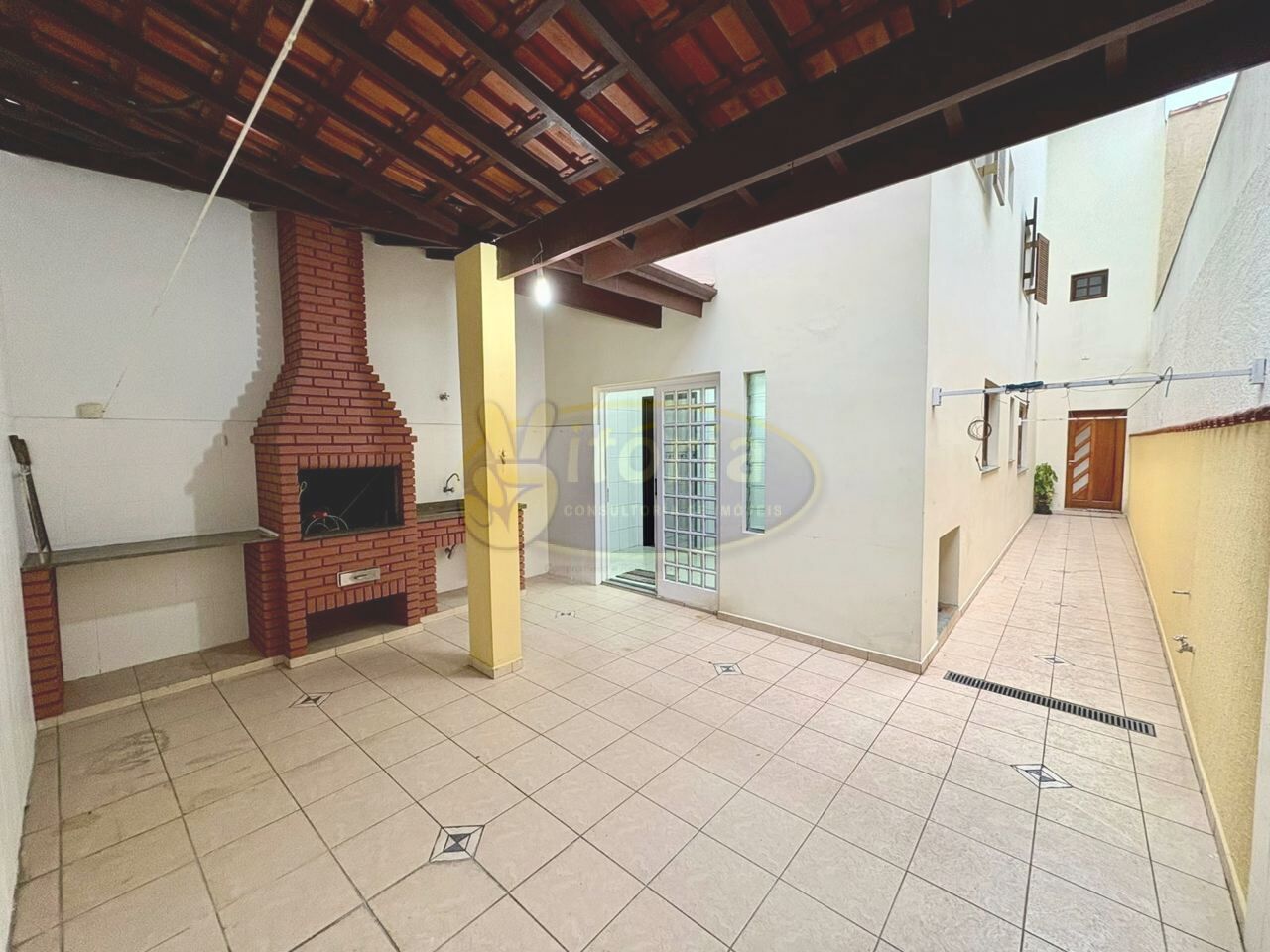 Área externa: 2 vagas de garagem cobertas (Portão automático), corredor lateral, quintal, área de lazer com churrasqueira e pia, lavanderia e edícula sobre lavanderia.