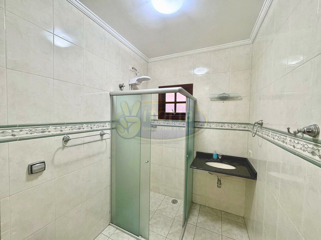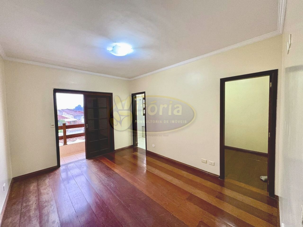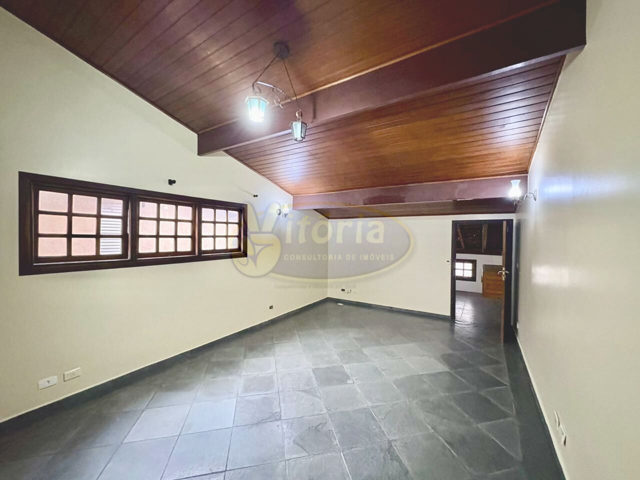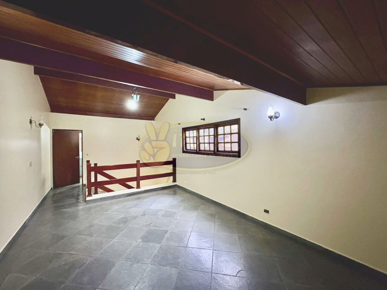 Pavimento superior com piso frio: 3 dormitórios sendo 1 suíte com sacada e 1 WC.