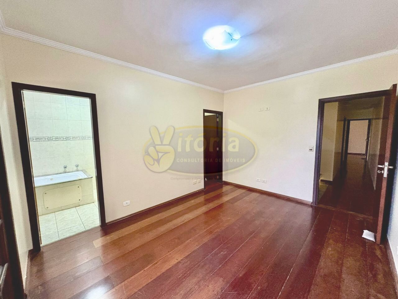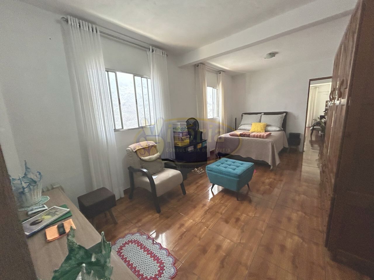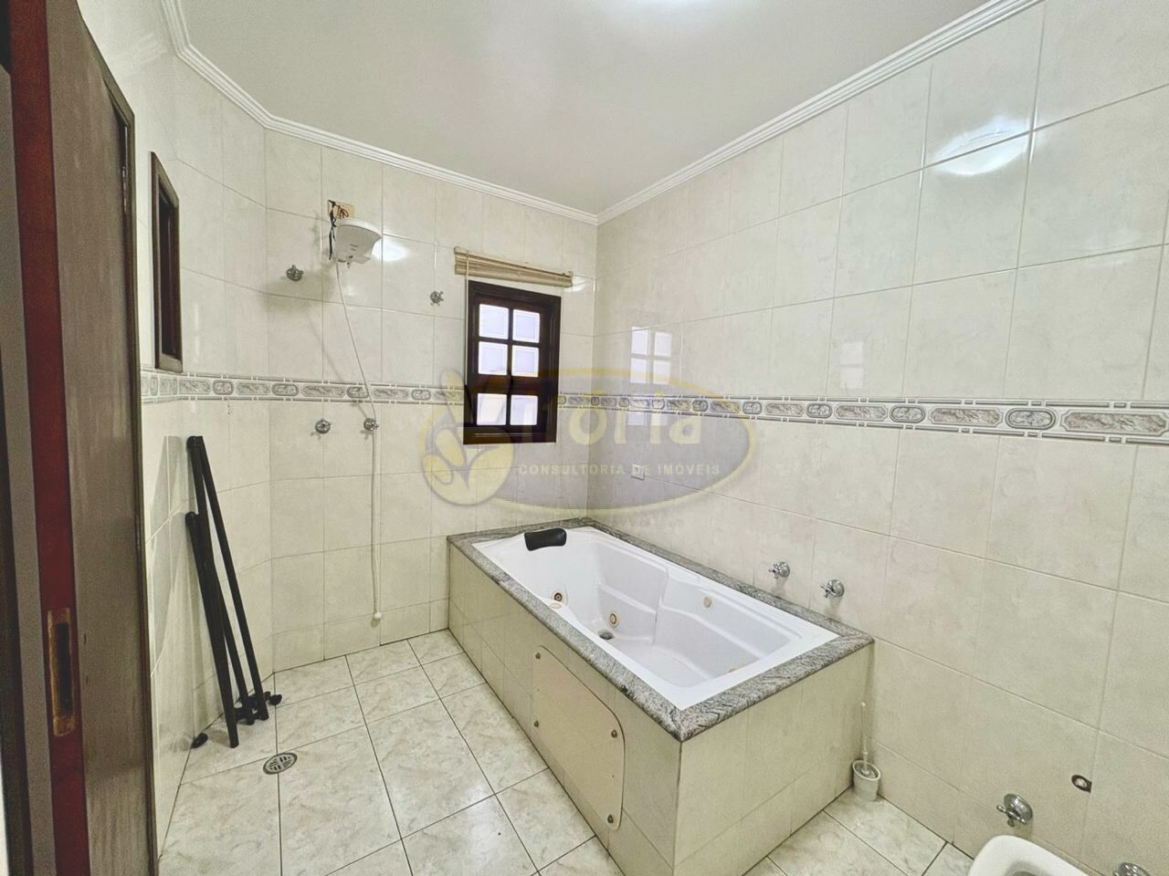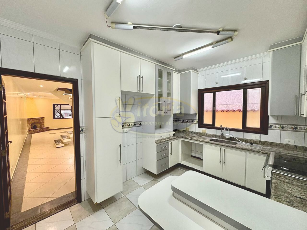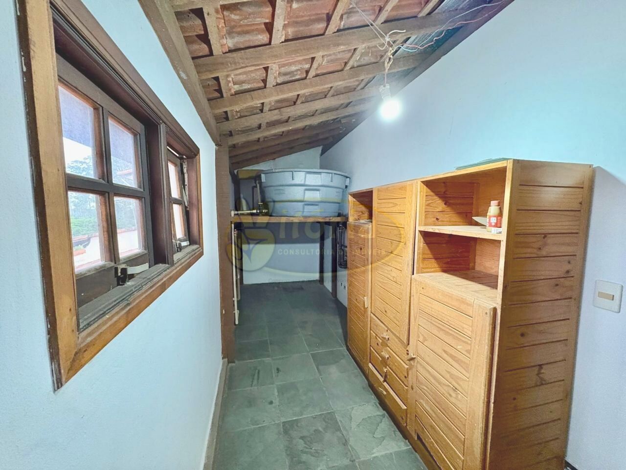 Pavimento superior com piso frio: 3 dormitórios sendo 1 suíte com sacada e 1 WC.