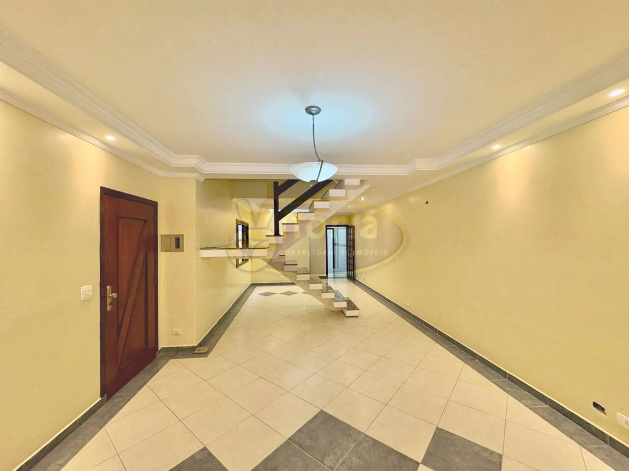 Parte inferior toda com teto rebaixado em gesso e iluminação planejada, piso em porcelanato polido: Sala de estar ampla, sala de Jantar, cozinha planejada e lavabo.